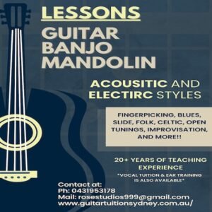 At Rose Studios Sydney, we offer expert tuition for musicians of all levels, from beginners to advanced. Whether you’re looking to master fingerstyle guitar, explore open tunings, delve into slide guitar, improve your flat picking technique, or enhance your improvisation skills, we have you covered. Our experienced instructor, John Morris, has over 25 years of teaching experience and is dedicated to helping you reach your musical goals.